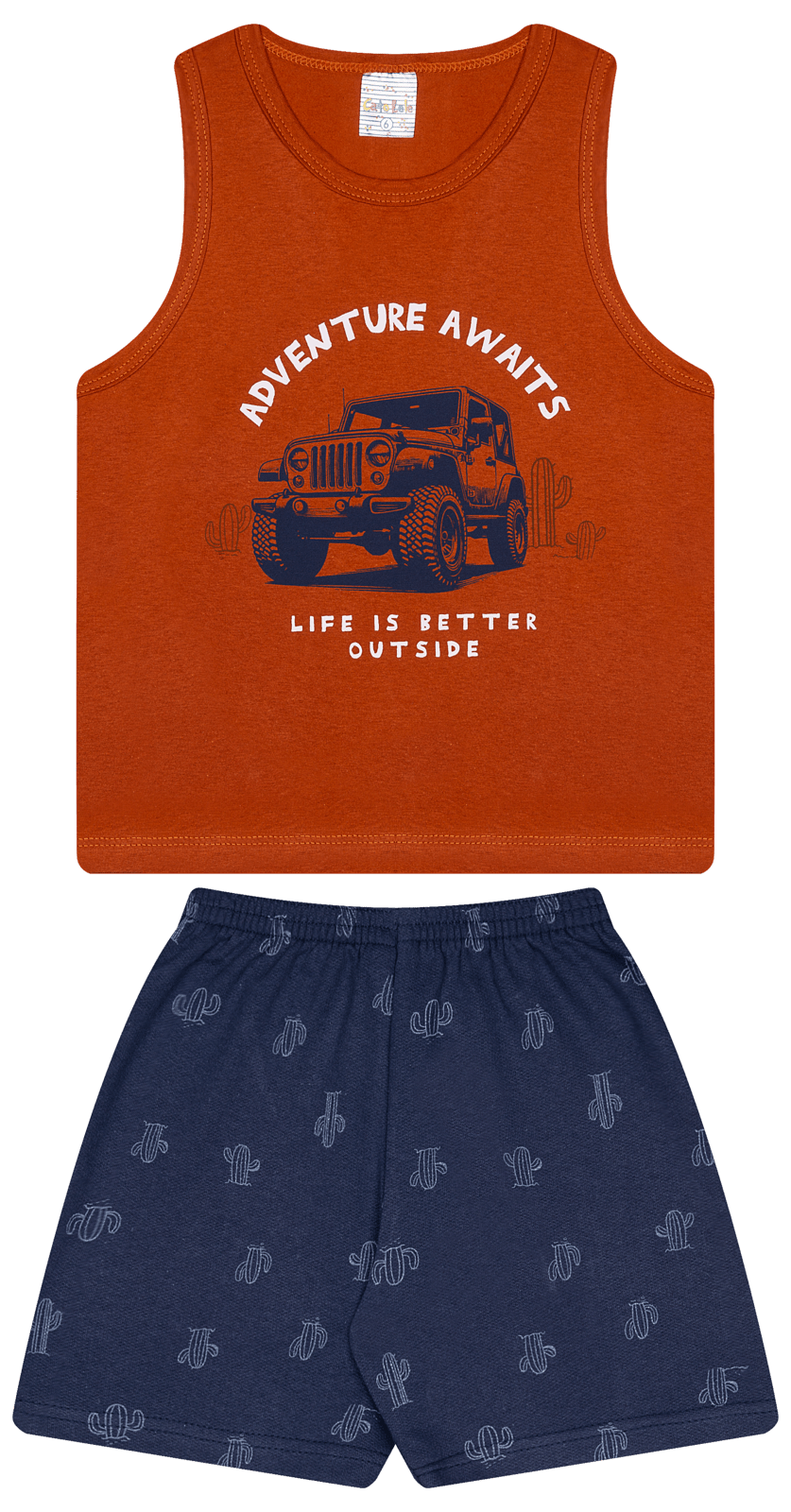A camiseta em Meia Malha leve e fresca garante conforto para o dia todo, enquanto o shorts em Moletinho encorpado, macio e resistente, proporciona liberdade de movimento sem abrir mão do estilo. Pensado para o dia a dia dos meninos, é perfeito para acompanhar cada brincadeira com segurança e conforto.