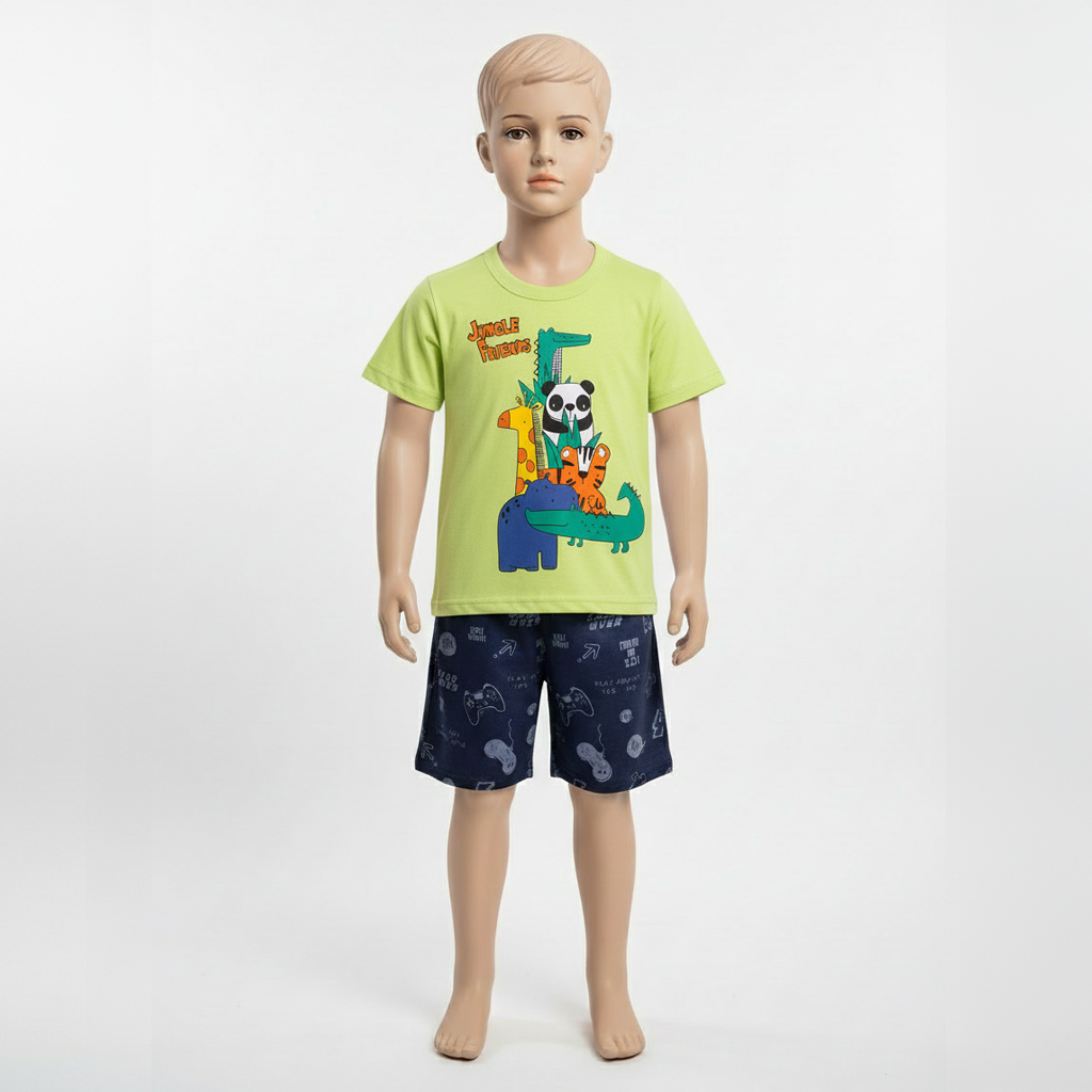 A camiseta em Meia Malha leve e fresca garante conforto para o dia todo, enquanto o shorts em Moletinho encorpado, macio e resistente, proporciona liberdade de movimento sem abrir mão do estilo. Pensado para o dia a dia dos meninos, é perfeito para acompanhar cada brincadeira com segurança e conforto.