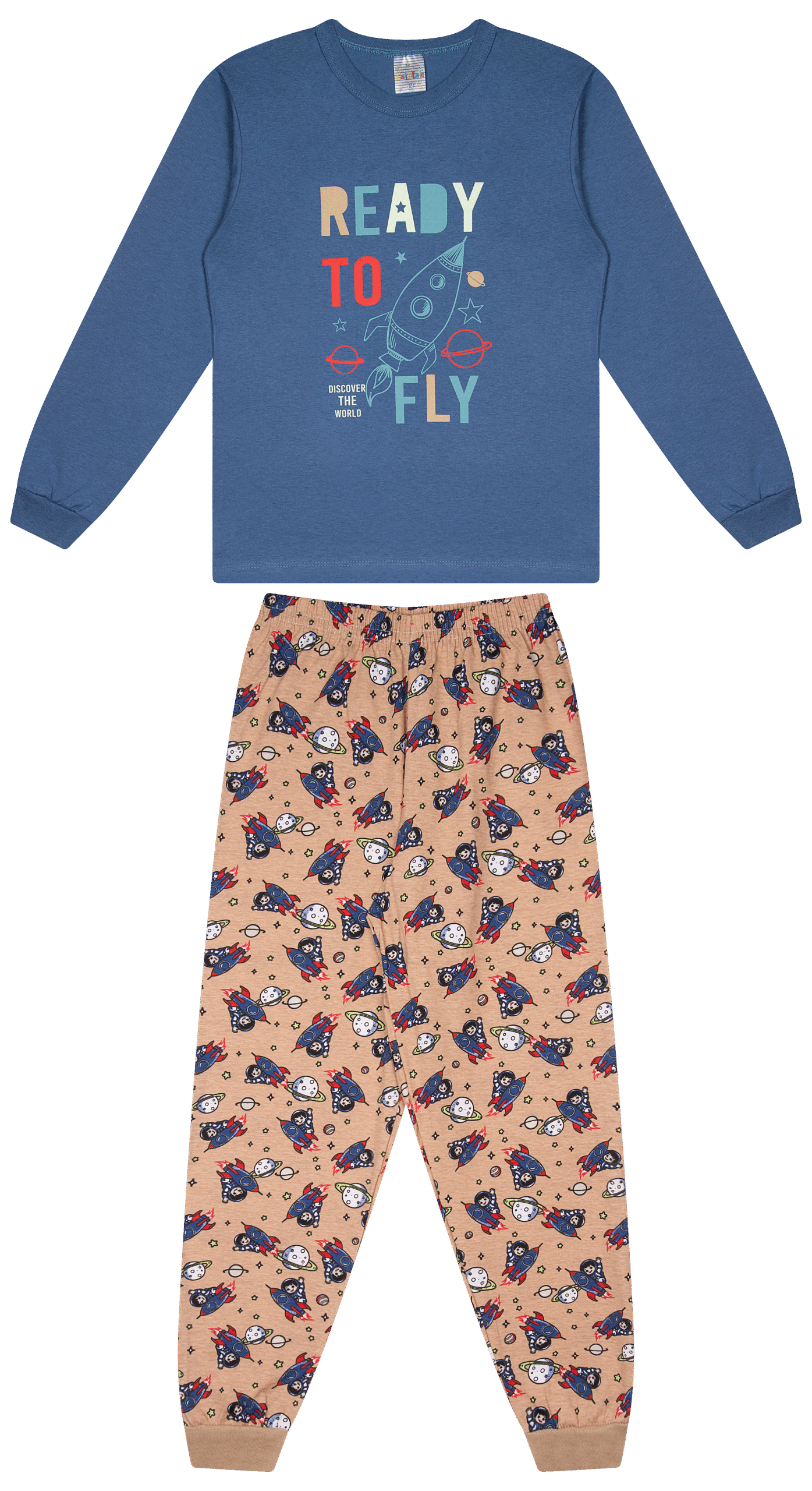 Confeccionado em meia malha, aplicada na blusa e na calça, o conjunto proporciona toque macio, conforto térmico adequado para as estações mais frias e excelente vestibilidade, favorecendo o uso diário infantil durante o descanso.